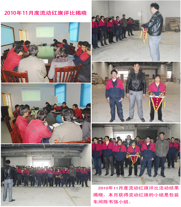 開(kāi)展流動(dòng)紅旗評(píng)比活動(dòng)目的是為了促進(jìn)團(tuán)隊(duì)的凝聚力和戰(zhàn)斗力,活動(dòng)主要對(duì)品質(zhì)、安全、6S等五個(gè)方面進(jìn)行評(píng)比。評(píng)比活動(dòng)總100分,每月開(kāi)展一次,在11月度的評(píng)比中,陳書(shū)強(qiáng)小組在品質(zhì)、安全6S等管理項(xiàng)目上均獲得優(yōu)異成績(jī)。通過(guò)評(píng)比委員會(huì)成員會(huì)議一致討論決定,為激勵(lì)該小組再接再厲,再創(chuàng)佳績(jī),授予陳書(shū)強(qiáng)小組流動(dòng)紅旗并頒發(fā)現(xiàn)金獎(jiǎng)勵(lì)1000元!并希望其他小組能夠以陳書(shū)強(qiáng)小組為榜樣,學(xué)習(xí)優(yōu)秀的經(jīng)驗(yàn)和方法,不斷進(jìn)步,不斷改善,為公司同時(shí)也為自己帶來(lái)更高的效益!